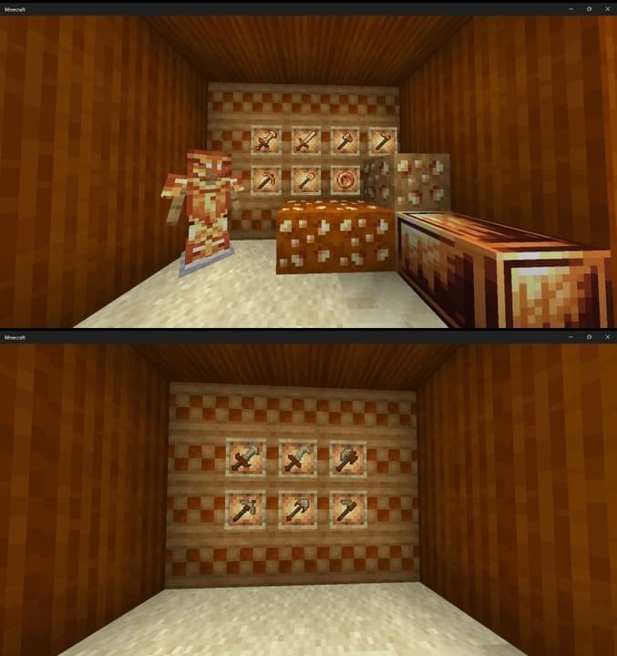 In addition, massive sand spikes appear underground and standard stone has been replaced with special rock variants, including new deep layered blocks in Minecraft PE (Bedrock).
