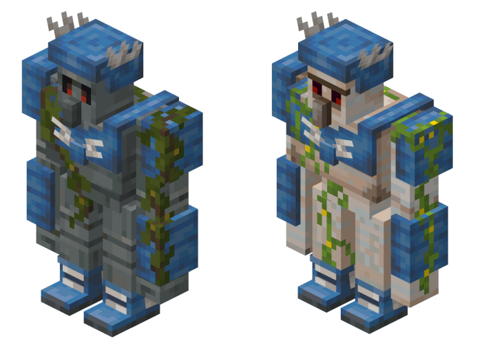 This mod for Minecraft PE (Bedrock) adds a new variation of the iron golem with improved speed and effects. It has three times more health than a normal golem and a unique ability to perform a battering ram attack that damages enemies. He does not attack players, villagers, or other golems.