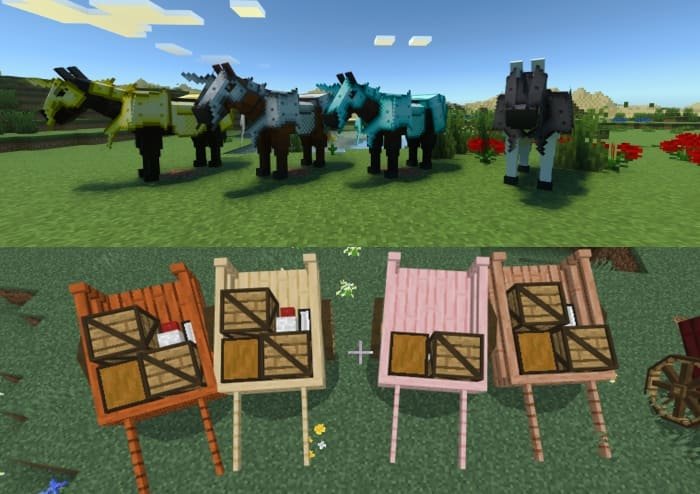 The mod also includes full support for armor and accessory crafting through the workbench, a dynamic cart appearance system that reacts to the number of items, and support for different biomes for new breeds. The developer promises even more innovations in future updates!