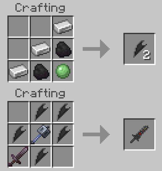 To create a weapon you will need two steps: first make a Slasher Blade, and then assemble a full sword. All crafting recipes are intuitive and do not require rare resources in Minecraft PE (Bedrock).