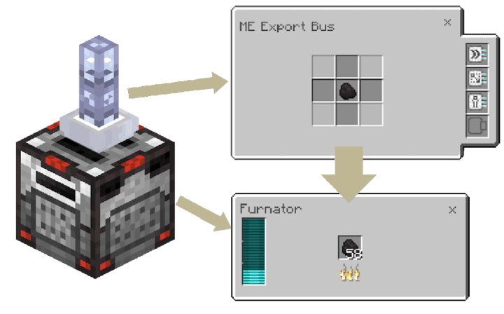 This mod on Minecraft PE (Bedrock) allows you to do away with chests, replacing them with a central storage system. All items can be stored in special cells and can be accessed from any terminal connected to a common network. The system is flexibly scalable and allows many units and devices to be combined.