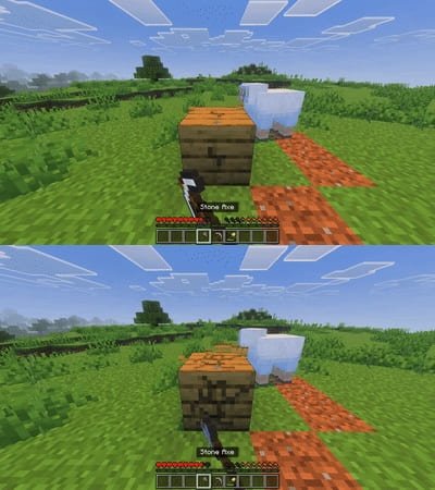 The system analyzes the block you are looking at: if it is wood - axe is activated, if it is earth - shovel, if it is stone - pickaxe. Tools of any material are supported, including modified ones, as long as the appropriate tags (is_axe, is_pickaxe, etc.) are present. Works with vanilla and custom items in Minecraft PE (Bedrock).