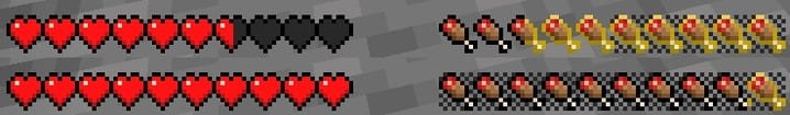 In survival and especially in PvP, visual enhancements like this are critical. Now you know when it's best to eat food to regain health, and how effectively your last meal worked. This helps you save resources, strategically align your combat, and understand exactly when satiation can save you from death in the world of Minecraft PE (Bedrock).