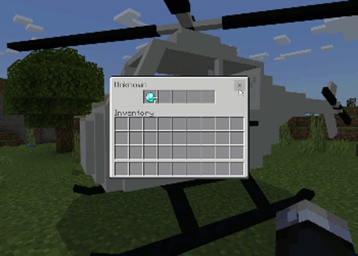 This add-on is fully compatible with achievements and does not require experimental features to be enabled in Minecraft PE (Bedrock). Each helicopter has built-in storage for 5 slots, which can be accessed by sitting down. In addition, you can repaint your helicopter in any color using dyes to give it a unique look.