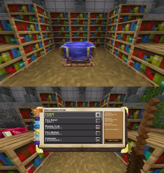 You can use this table to study magic scrolls with spells. To get all the recipes - build the table up to 30 bookshelves: