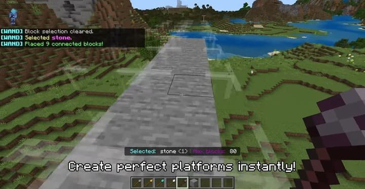 Before placing blocks, the stick shows a semi-transparent preview of the future structure using special particles. This allows you to see exactly where the blocks will appear and avoid mistakes. This approach makes working with the tool comfortable even when building complex structures with precise dimensions.