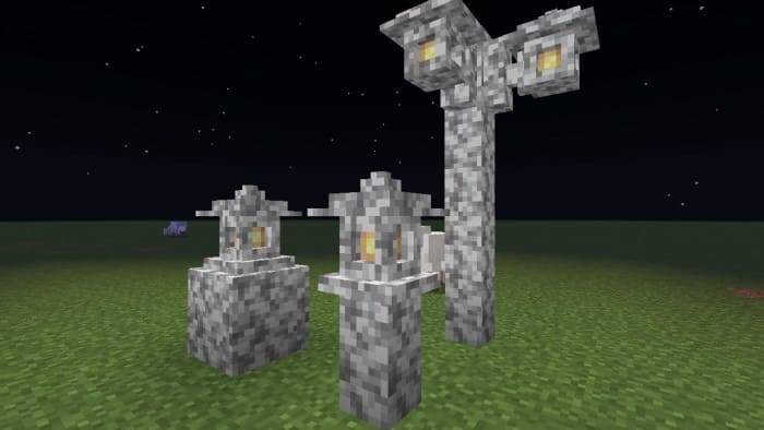 Будет добавлено 19 фонарей! Все они будут красиво сливаться с блоками из которых они созданы.