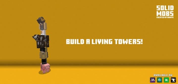 The Solid Mobs mod completely changes the physics of interaction with creatures in Minecraft PE (Bedrock), making them solid objects. Now you can literally walk on the heads of pigs, villagers, creepers, and any other mobs without falling through them.