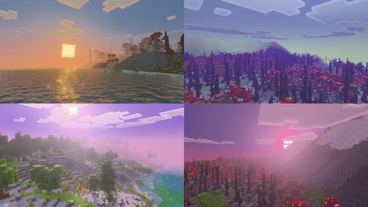 The main feature of the add-on is its work with light: you will see sun rays (God Rays), rich sun blooms (Sun Bloom), and realistic reflections on water. Atmospheric fog and fantastic colors make the picture in Minecraft PE (Bedrock) vivid and voluminous. Cinematic lighting changes the perception of familiar biomes, adding mystery to them.