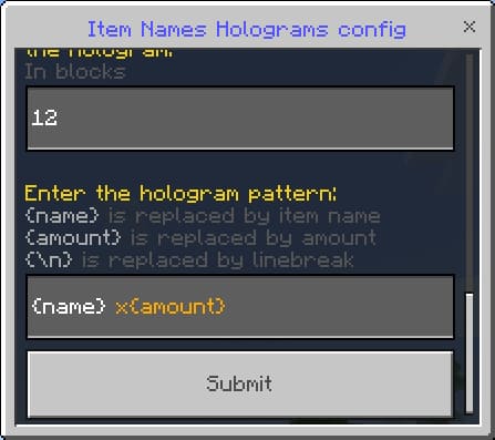 To do this, enter the command /function itemsHolograms_config in the chat.