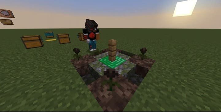 The ritual involves using shower sand blocks, dried roses, and other materials to successfully resurrect a player in Minecraft PE (Bedrock). After the ritual, the player receives a temporary boost, making their return to the world particularly important for the team.