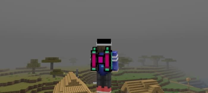 The backpack attaches to the chest harness and ensures a safe and smooth flight without any delays. It is particularly useful on maps with steep terrain or in survival mode.