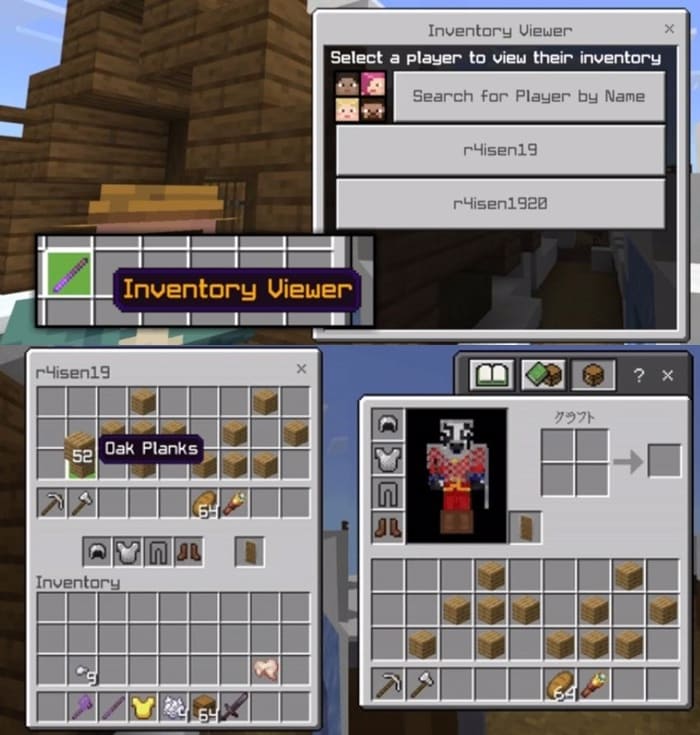 The InvSee (Inventory Viewer) mod will allow you to view and edit the inventory of the player who plays with you in Minecraft PE (Bedrock). The whole interface looks beautiful and intuitive, and will also work in survival mode as well.