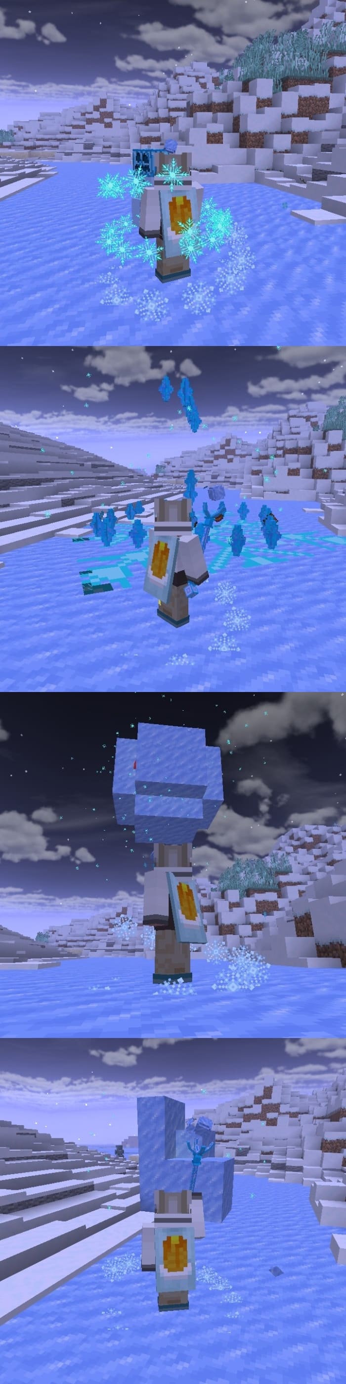 With this mod you will be able to create and manipulate ice in a wide variety of forms. You will be able to freeze enemies, create ice barriers, create snowy areas and much more. Your ice magic abilities in Minecraft PE (Bedrock) will be unrivaled and will help you in battles and in various situations.