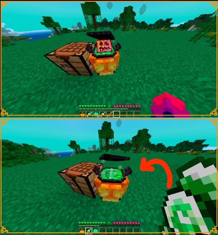 In a special cauldron you can brew all sorts of cool stuff in Minecraft PE (Bedrock). Just throw candies into the cauldron... But be careful, this cauldron can summon a powerful boss.