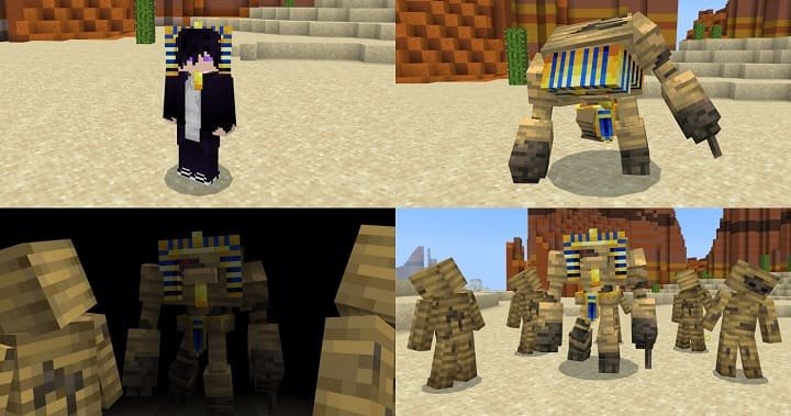 The temple in the desert of Minecraft PE (Bedrock) can now store an item to summon a mummy boss that can be fought to get his crown, which allows the player to summon and control mummies. Defeating the boss can be tricky, as he has a number of special abilities to control enemies and will constantly summon mummies that start attacking.