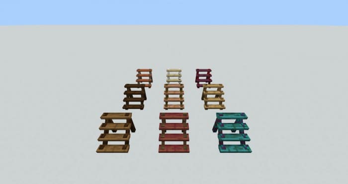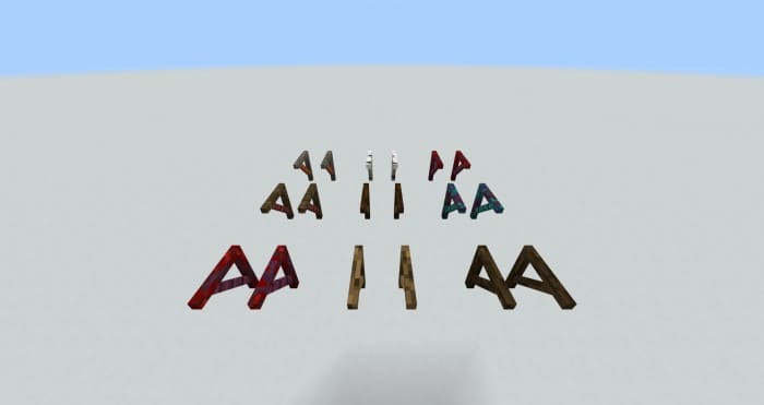 This mod is fully supported by Survival mode, as all supports will have their own crafting and coloring, depending on the color of the wood. And there is also support for network play in Minecraft PE (Bedrock).Supports