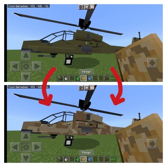 You will be able to improve your transportation and thus make it unique. So if you play in Minecraft PE (Bedrock) together with friends. Then you can each have your own helicopter with its own coloring. All parts of the helicopter are crafted, you will have to scraft them, and then assemble the whole helicopter.