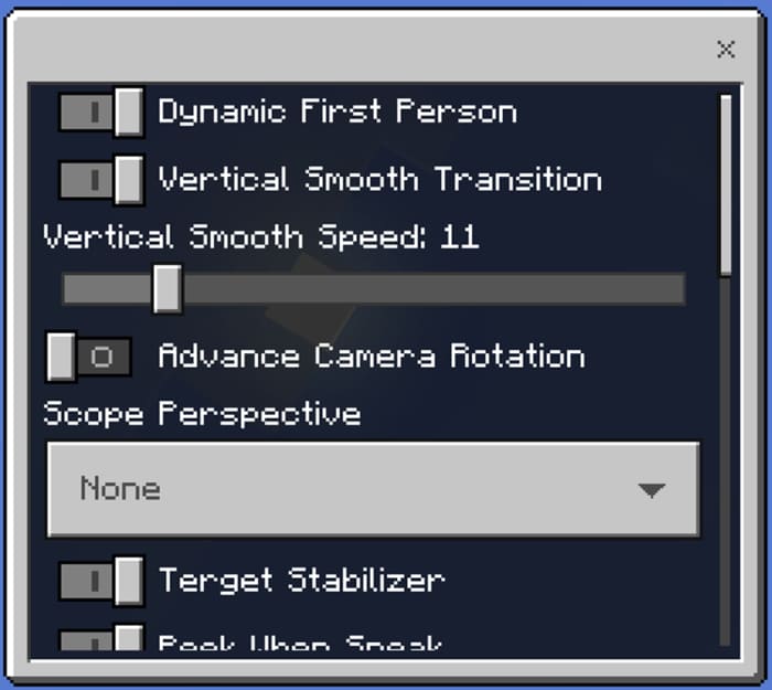 The Dynamic Third-Person Camera mod offers various settings that you can change to get the ideal viewing angle when shooting in Minecraft PE (Bedrock). You can adjust the camera height, distance from your character, and angle to create the optimal playing conditions.