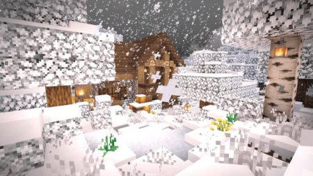 At night, putting up a torch or some other light source will give you a richer yet softer lighting.This winter set includes not only shaders but also textures. This is done to bring the winter atmosphere in the game to the maximum.