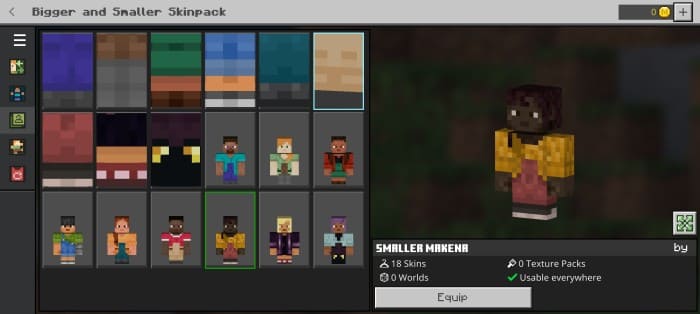 The Bigger and Smaller Skin Pack will give you the opportunity to wear bigger or smaller skins in Minecraft PE (Bedrock). So if you want to increase in size or on the contrary shrink, then you can download this pack.
