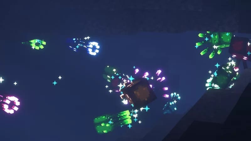 The Better Squids textures will add variants of glowing squids in Minecraft PE (Bedrock). That is, you will be able to find absolutely colorful squids in the water, which will give your oceans a fabulous atmosphere.