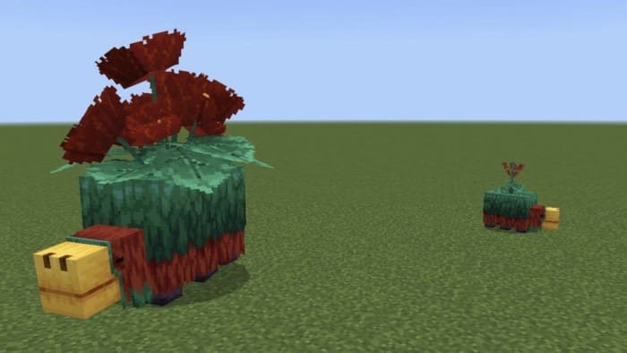 Bulbasniffer textures will allow you to change the appearance of Sniffer by adding a new flower on it, making the design of Sniffer in Minecraft PE (Bedrock) more fun.