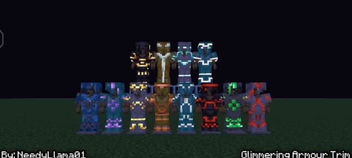 Glimmering Armour Trims textures for Minecraft PE (Bedrock) will make the ornaments on your armor glow in the dark. So if you want to surprise your friends and make beautiful screenshots, you can download this pack.