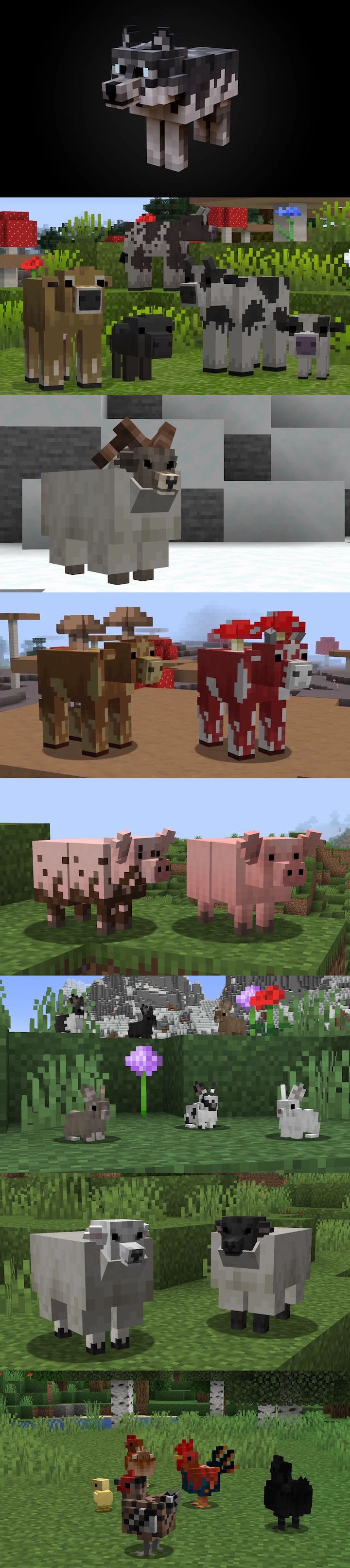 This one will give certain details on the mobs: skin color, 3D details and more in Minecraft PE (Bedrock). In addition, some mobs will have multiple models of their textures.