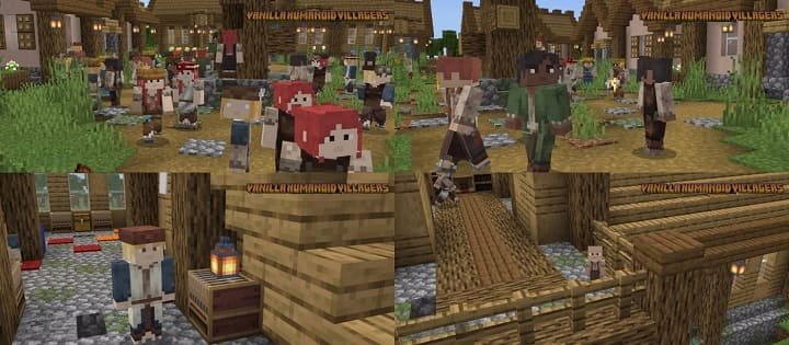 We have given examples of some of the types of residents using these resource packs for Minecraft PE (Bedrock), which allow you to change the appearance of the residents to a more human appearance and increase realism.