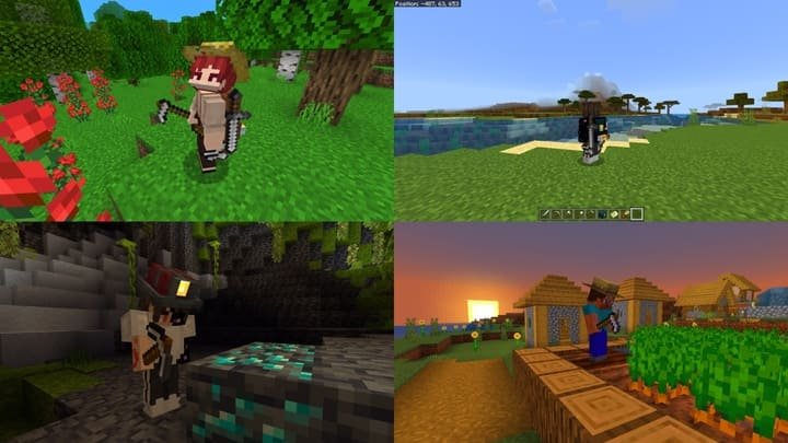 Adventure+ are some of the suitable textures for survivalists and adventure seekers in Minecraft PE (Bedrock), as they will display different jewelry behind the character's backpack or on their head based on items in their inventory.