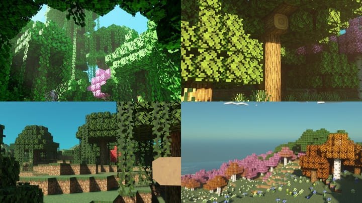 Below we have provided some screenshots that clearly display the beautiful and detailed changes of trees in the world of Minecraft PE (Bedrock) while playing with this texture pack: