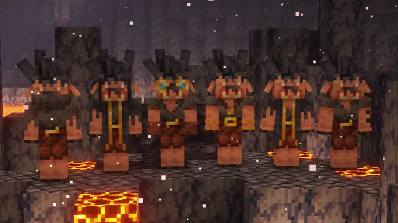 This resource pack affects all piglins in Minecraft PE (Bedrock).List:■ 56 regular piglins.